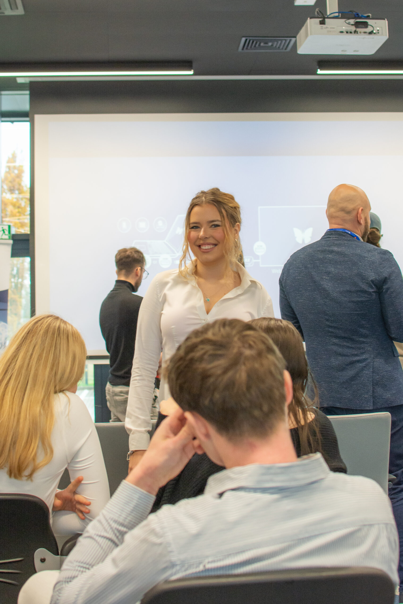 Atmosfera wydarzenia była pełna energii, zaangażowania i zdrowej rywalizacji. Uczniowie pracowali niemal w startupowym tempie, od pierwszego szkicu po dopracowaną prezentację. Powstawały projekty związane z edukacją, zdrowiem, smart city, nowymi technologiami czy usługami cyfrowymi. Mentorzy wspierali zespoły w dopracowaniu wartości, modelu działania i sposobu przedstawienia projektu, dzięki czemu finałowe prezentacje stały na bardzo wysokim poziomie.