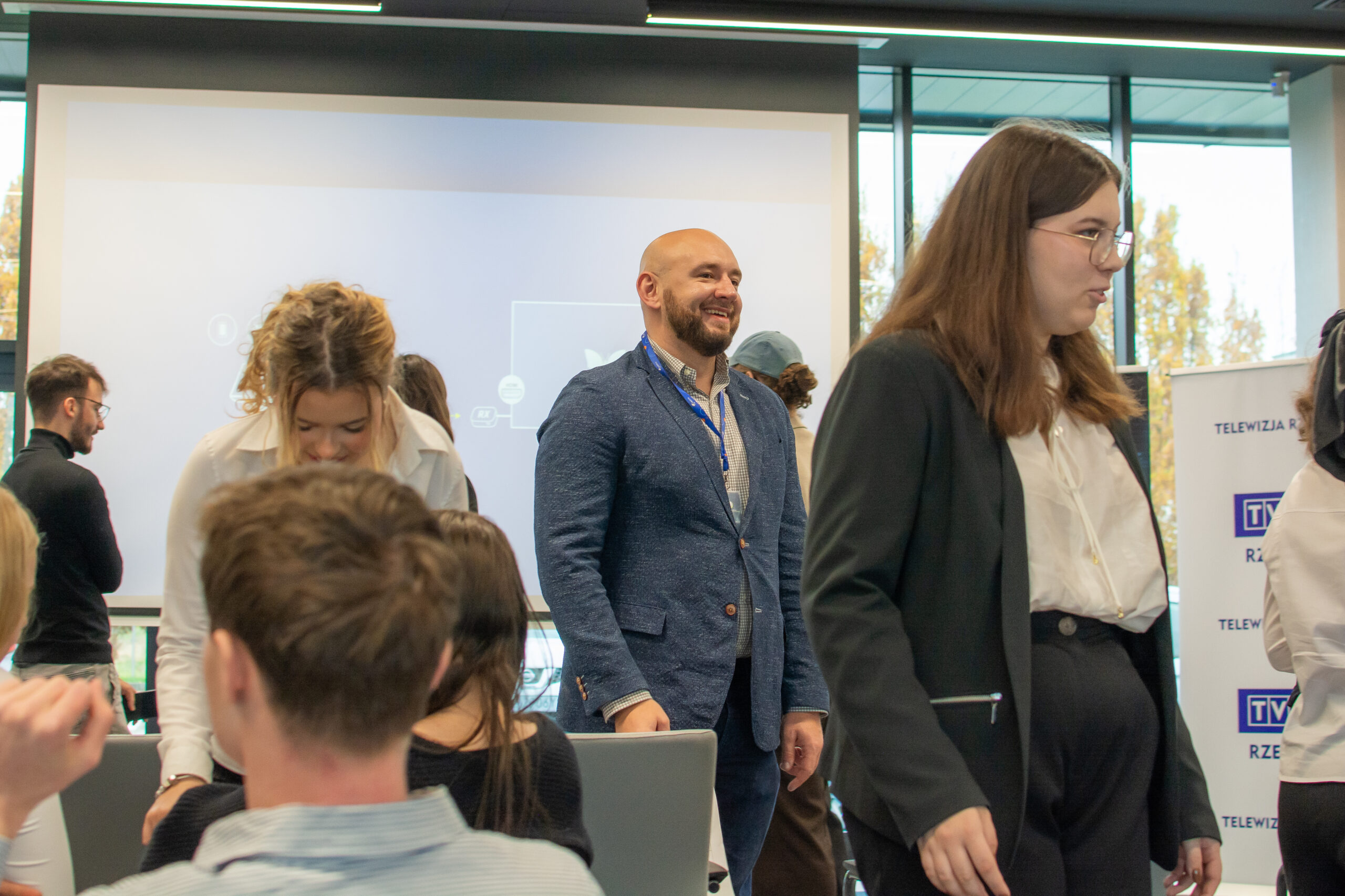 Wydarzenie otworzył Wiceprezes Netrix, Łukasz Gołąbek, który podkreślił znaczenie odwagi, kreatywnego myślenia i wykorzystywania nowych technologii przez młode pokolenie oraz przedstawił główne cele i filozofię naszej firmy. Netrix gościł uczestników w swojej rzeszowskiej siedzibie przy ul. Technologicznej 40, tworząc przestrzeń do pracy, wymiany doświadczeń i rozwoju przedsiębiorczych kompetencji. Wiceprezes Netrix zasiadał również w jury, oceniając finałowe prezentacje zespołów i zwracając uwagę na pomysły, które mają potencjał komercyjny oraz realny wpływ społeczny.